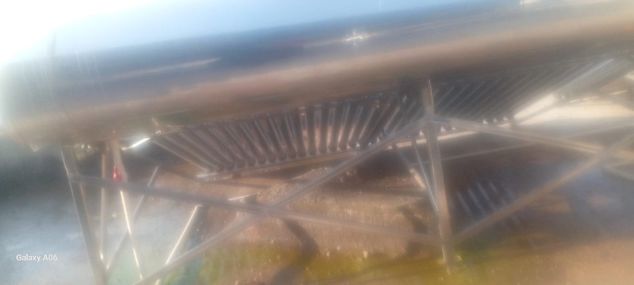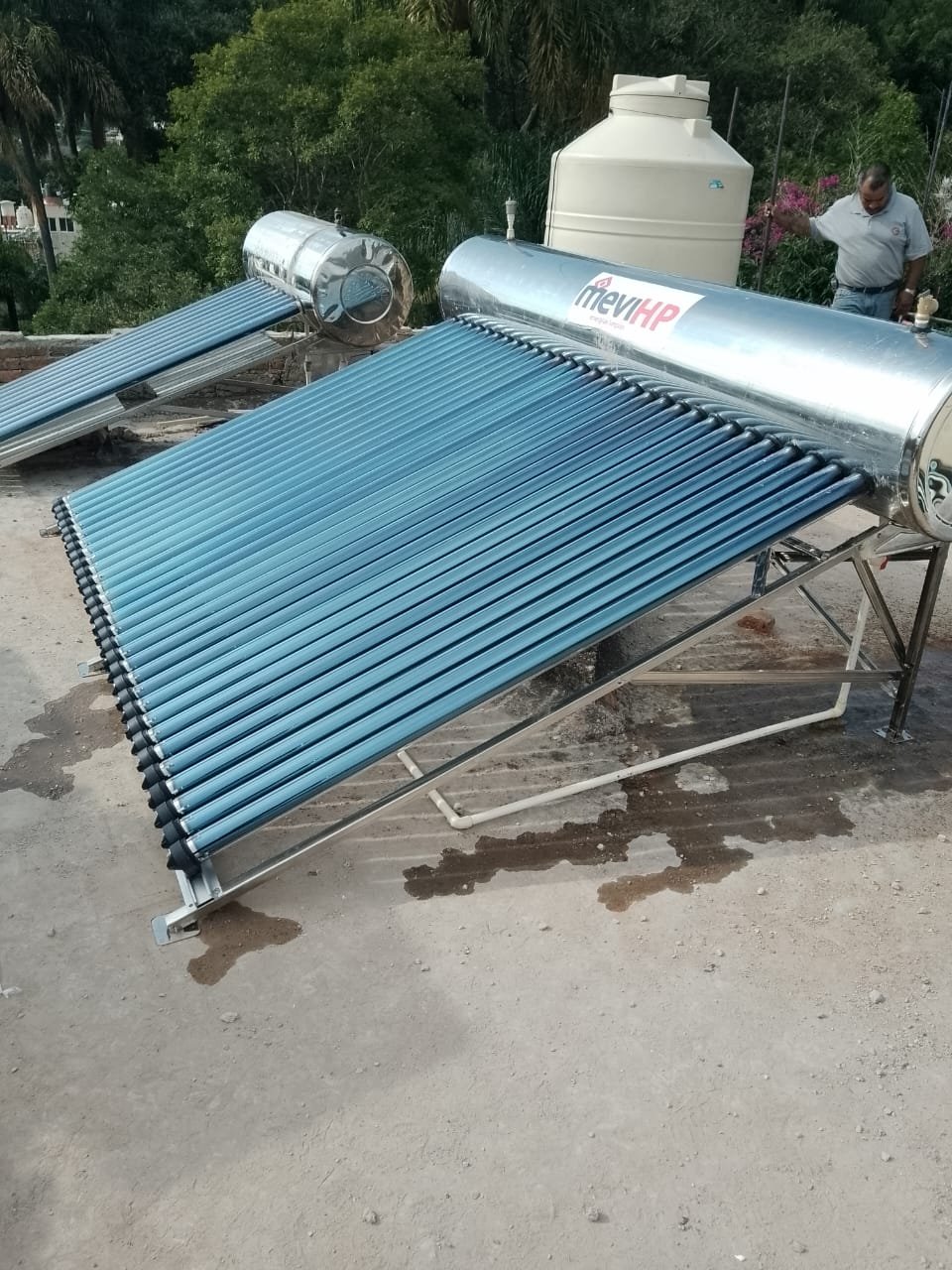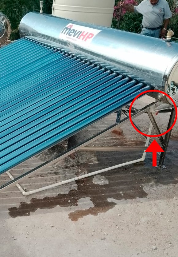 Calentador solar de 30 tubos para alta presión presenta una fuga de tanque interno que llevo a una fuga continua hasta cubrir de agua toda la capa de El poliuretano (PU o PUR) y abrir la tapa izquierda del tanque exterior. De acuerdo a las fotos proporcionada por el cliente hay señales de un alto contenido salino en el agua por manchas visibles en tanque y válvulas expulsoras de agua y presenta un desgaste prematuro mayor al promedio. En espera de mejores imagenes.